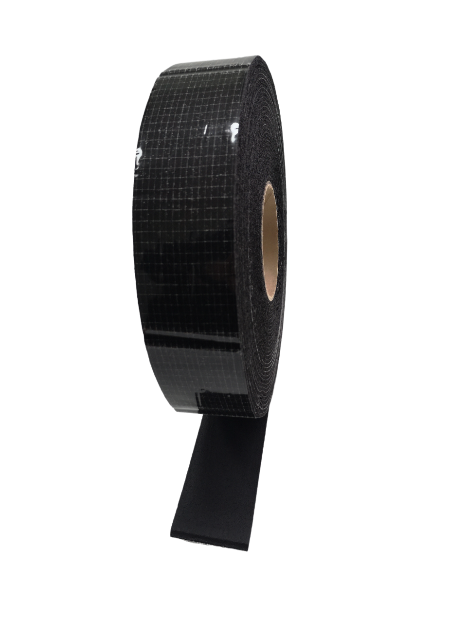 Теплоизоляционная высокотемпературная лента РУ-ФЛЕКС ВТ-СК толщиной 3мм имеет самоклеящееся армированное стекловолокном исполнение и выпускается шириной 50мм и длиной 15м